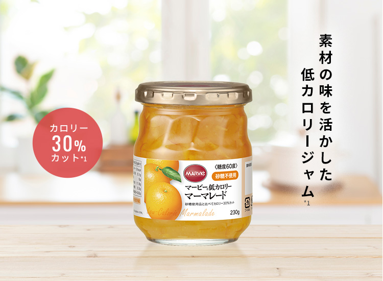 マービー使用でカロリーカットなのもよいですし、何よりマーマレードのさわやかで柑橘類の香りもよいと思います。脂肪分ゼロのヨーグルトに入れて食後のデザートのひとつとして、季節のフルーツと一緒に楽しんでいます。量もたっぷりですしおすすめできるジャムです。
