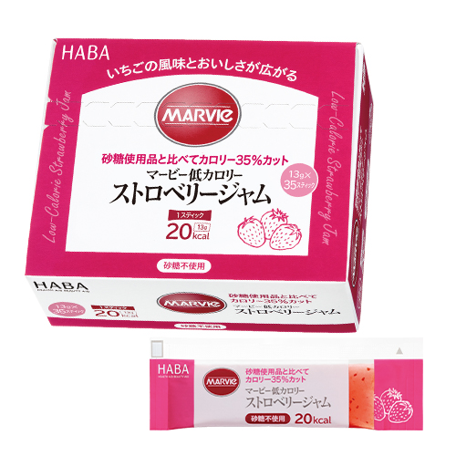 砂糖を使用せずに、マービー甘味料で果実を煮詰めて素材本来の味わいを活かした低カロリージャムです。果肉感が楽しめる瓶タイプと、カロリー計算しやすいスティックタイプの2種類から選べます。