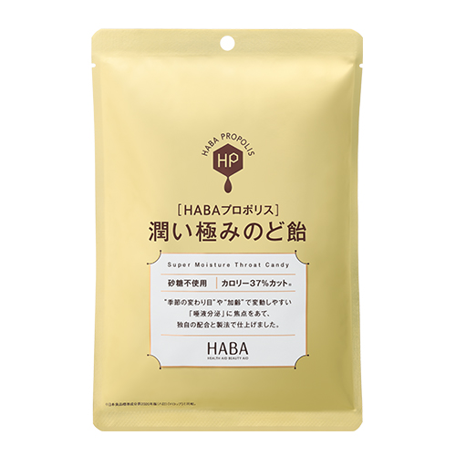 砂糖不使用で、プロポリス特有の刺激が気にならない、まろやかな味と舌触りの「HABAプロポリス 潤い極みのど飴」。いつでもパクッと1粒で快適に過ごしましょう。