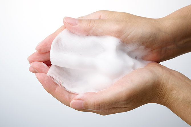 弾力のある濃密な泡立ちで、うるおいを守りながら汚れや不要な角質を洗い流します。