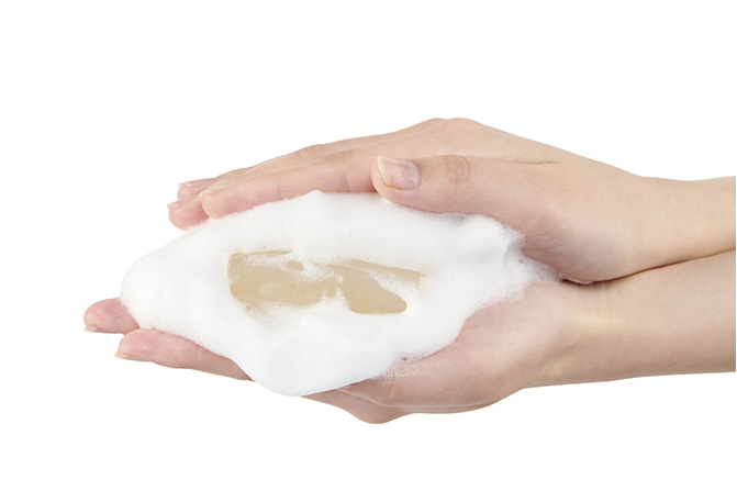 できるだけ刺激を与えないように良質な泡でそっと洗いたい。