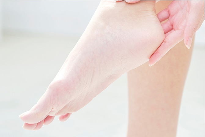ターンオーバーが乱れないためには毎日の保湿ケアに加え、入浴やマッサージで血行を促すことも必要です。外的刺激も角質を固くする原因になるので、サイズの合ったクッション性の高い靴を選ぶとよいでしょう。