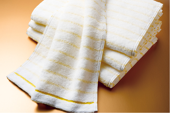 〈素材〉綿100%(パイル部分オーガニックコットン100%)〈色〉イエローボーダー日本製(今治)認定番号 第2025-1783号
