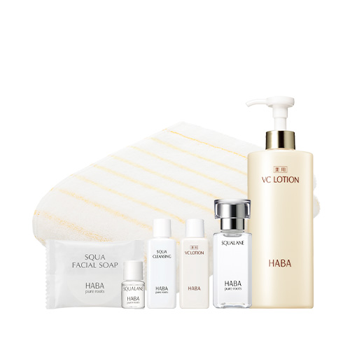 有効成分ビタミンC*1を配合した美白*2のための化粧水とスクワランのセット。日やけによるシミやくすみ*3を防ぎながら、うるおいと透明感あふれるクリアな肌に導きます。化粧水は定番の180mL、または大容量360mLから選べます。