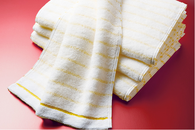 〈素材〉綿100%(パイル部分オーガニックコットン100%)〈色〉イエローボーダー日本製(今治)認定番号 第2025-1783号 -