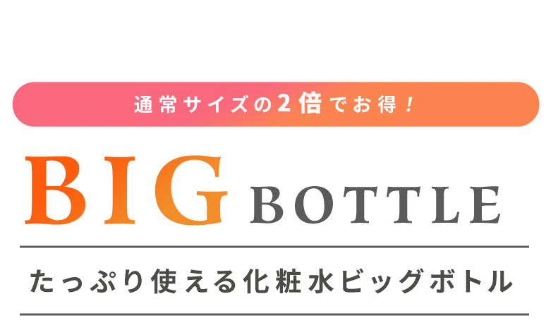 気候の変化などでゆらぐ肌には、たっぷりの化粧水で保湿ケアをすることが大切。お得なビッグボトルの化粧水で、惜しみなくうるおいを補給しましょう。