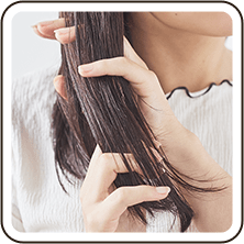 髪のパサつきや広がりが気になる時に。少量を手にとってなじませると毛先が落ち着き、まとまりやすくなります。指先に少量のスクワランをつけて、地肌マッサージにも。